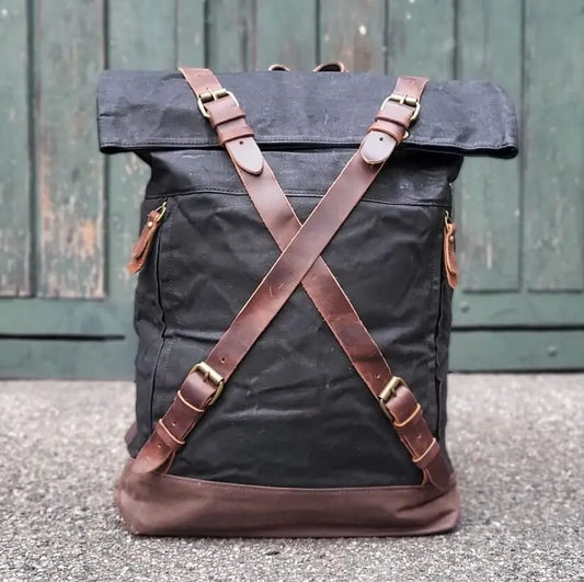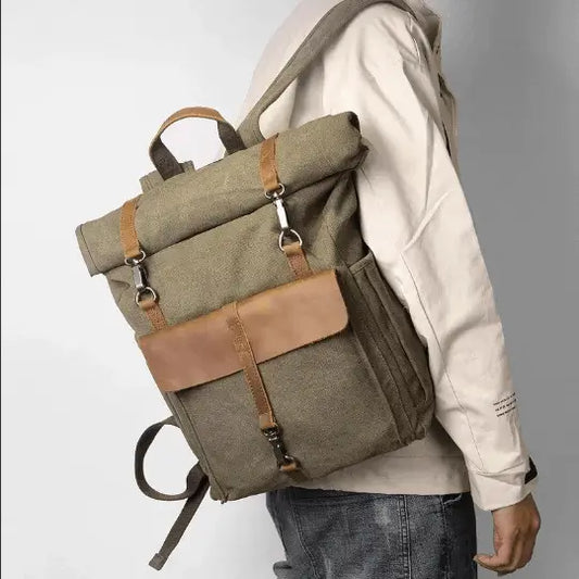 Rolltop Canvas Rucksack mit Leder "Nomad"