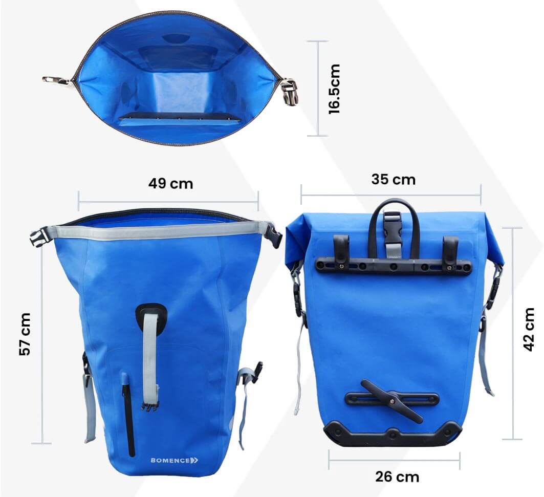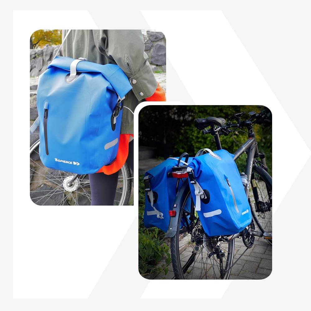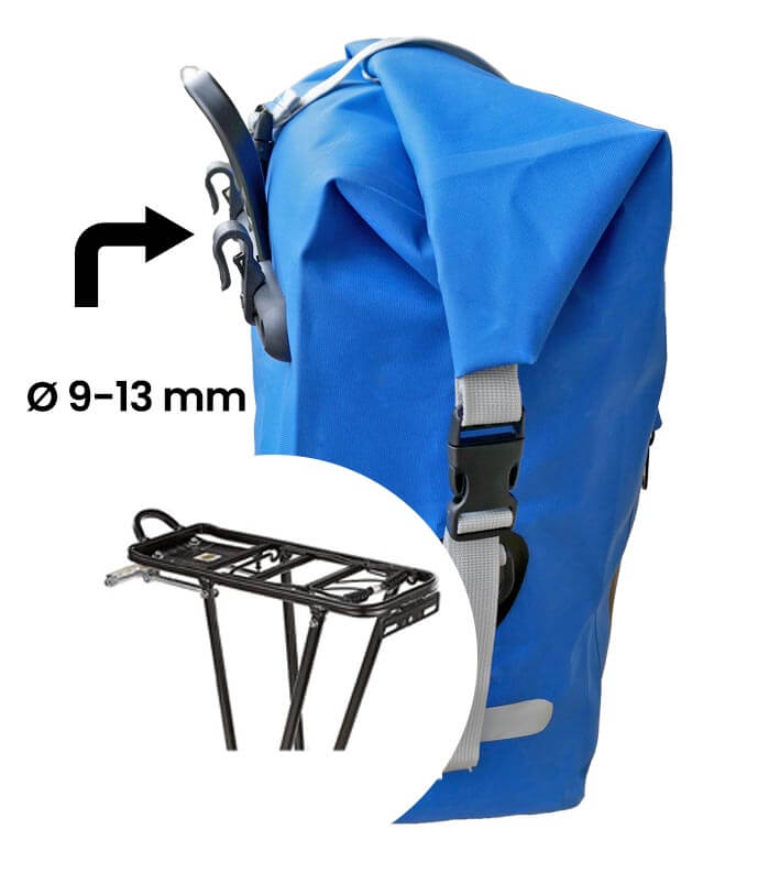 The distance between the bike attachments is horizontally adjustable. The waterproof bike bag can cover a total of luggage rack tubes up to 13mm .
